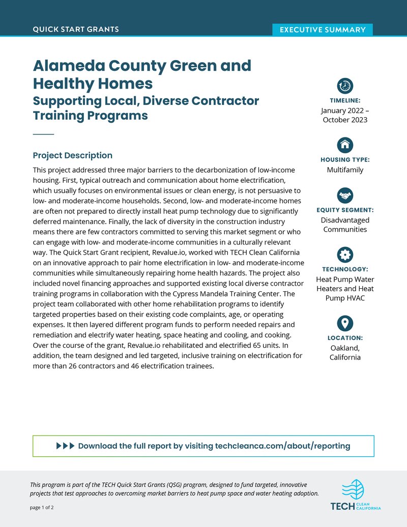 Revalue.io will 1) remediate home health hazards or code violations in low-income West Oakland households through electrification and 2) provide training to contractors and apprentices to improve the diversity of the local HVAC workforce.